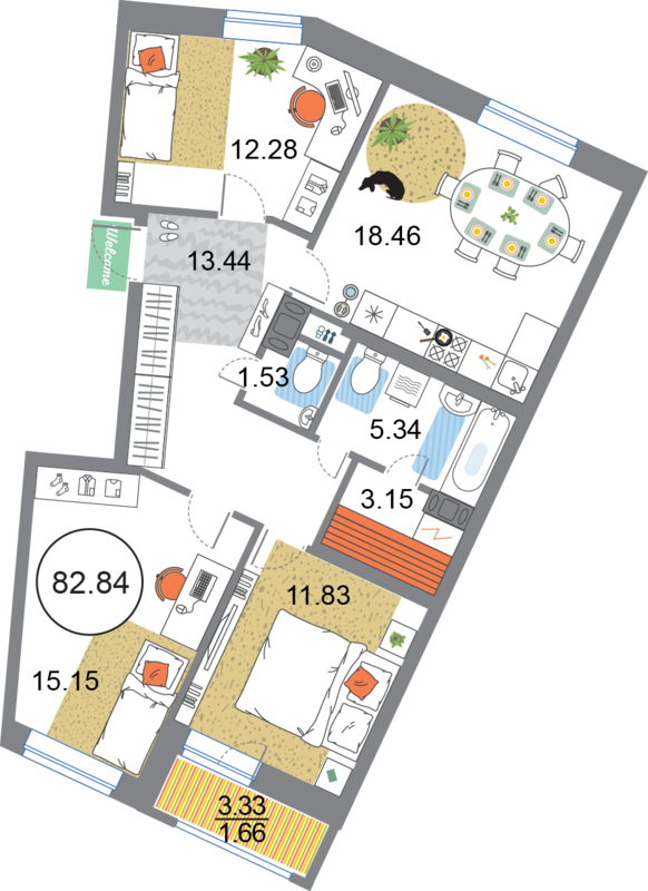 Двухкомнатная квартира (евро) №316